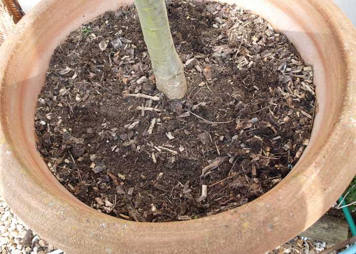 It would be best if you ended up with a gap between the topping and the pot top of about 5cm (2 inches). This prevents water from spilling over the rim during watering.